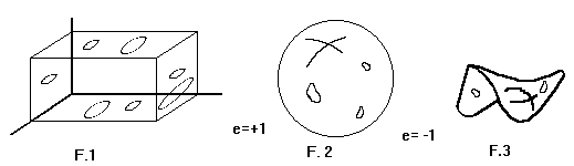 Space, then, would be like an " IMMENSE VOLUME " and the COSMOS something like a SPHERE of positive (D59_FIG3, F2) or negative (D59_FIG3, F3) curvature.