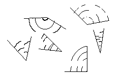D59_FIG6All these dragonflies fly in such a way that not one has its wings oriented identically to any other. In other words, there will not be a single pair of dragonflies which, at a given moment, will be able to be superimposed so that the wings and the abdomens match exactly.. But, as we already said, this image is excessively simplified and distant in its analogy.