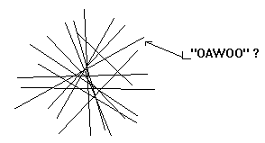 IOAWOO would be " the ANGLE " formed by two OAWOO (" AXES ") of two associated IBOZOO UU (D59_FG11); if in both cases we use the word " ANGLE ", whereas they are two very different concepts, it is because there does not exist in your language a corresponding word (NdR: To our knowledge the concept of "angle "formed by two axes in space, axes which do not intersect, does not exist in our geometry, which requires, for the definition of these two axes, a projection onto planes, or the measurement of two angles compared to a trihedron of reference. Which geometrician will formulate the IOAWOO?)