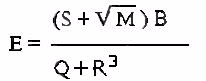M is the total mass of the Cosmos considered. R is the radius of the spatio-temporal Universe (R must be thought of not as linear, but as the radius of a hypersphère), (-)E is the energy brought to the Universe in its initial stage (the formula undergoes a deviation and loses precision for large radii), i.e. in a stage of advanced expansion